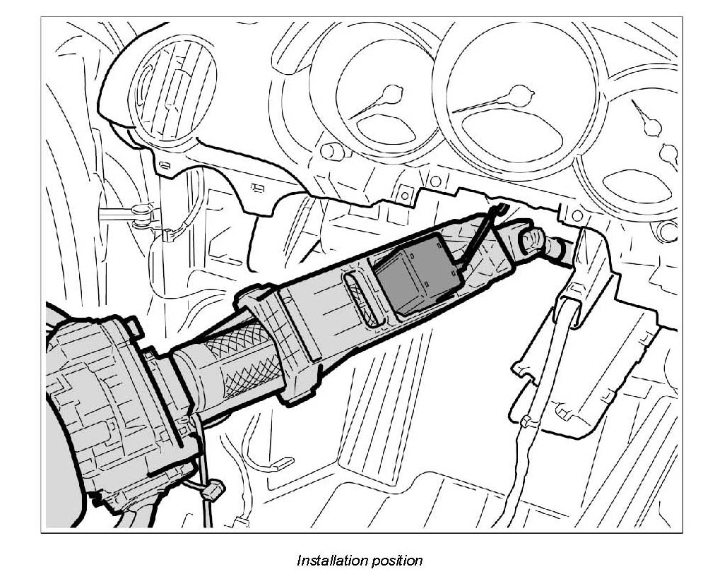 1. Check the installation position of the plastic guide for the ELV control unit and insert the plastic guide into the opening in the steering column.