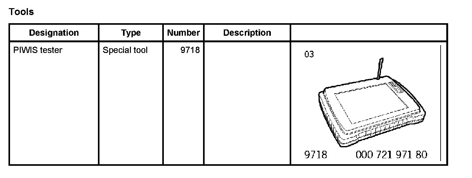 The procedure described here has been structured in general terms; different text or additions may appear in the PIWIS Tester 9718.