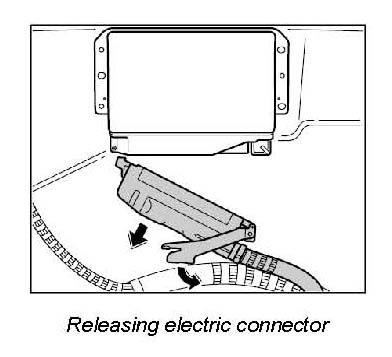 2. Remove control unit, then release and pull off the electric connector -Arrow-.