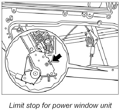 - When replacing the power window unit, make sure that the correct position of the lower limit stop is selected for the relevant vehicle model.