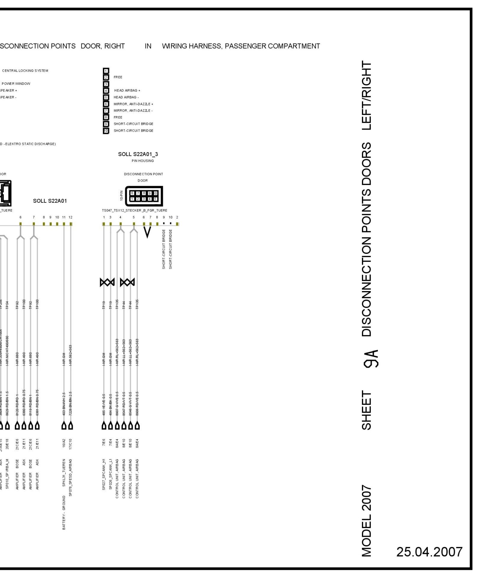 Disconnection Points Doors Left/Right - Sheet 9A (Part 3):