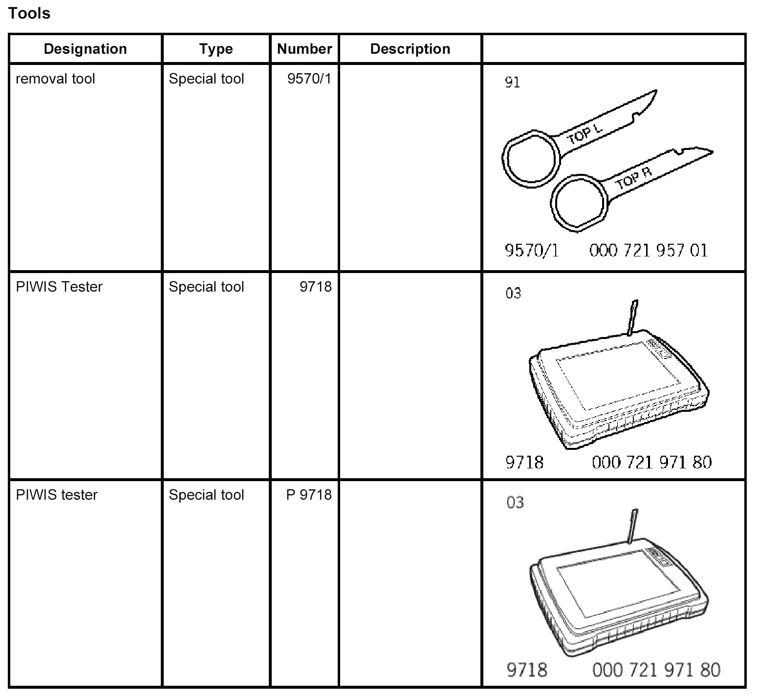 - The PIWIS Tester 9718 instructions take precedence since the description may be different. This may be due to more recent software versions.