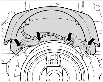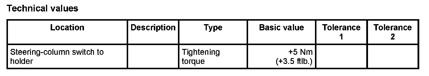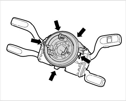 - When removing and installing the steering column switch, turn the steering wheel so that the wheels are in straight-ahead position. This ensures that the airbag contact unit is locked in the central position.