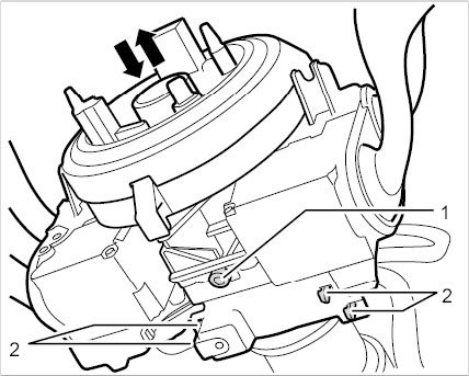 Unscrew screws -1- and unclip cable clamp -2-.