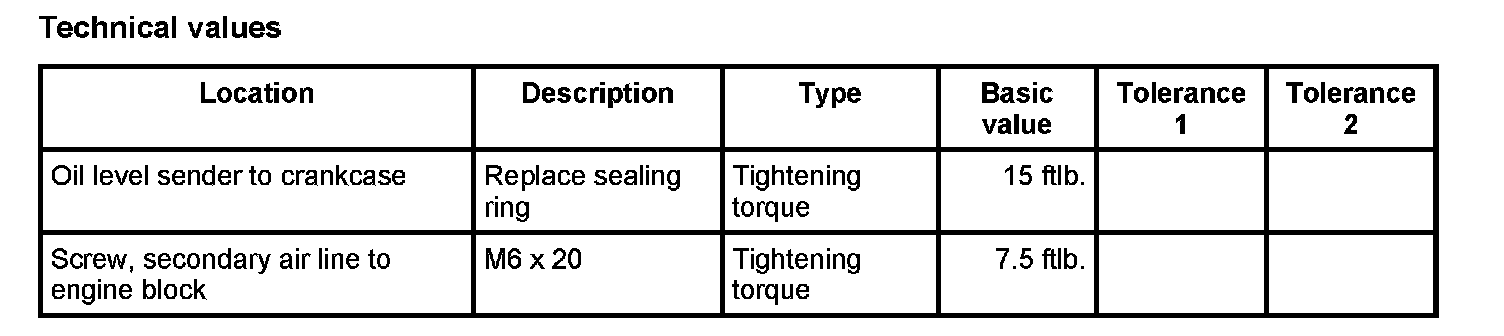 1. Insert oil-level sender together with a new sealing ring and tighten. --> Tightening torque: 15 ftlb.