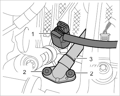 2. Unscrew two Torx screws (M6 x 20) -2- on the flange of the secondary air line -3-.