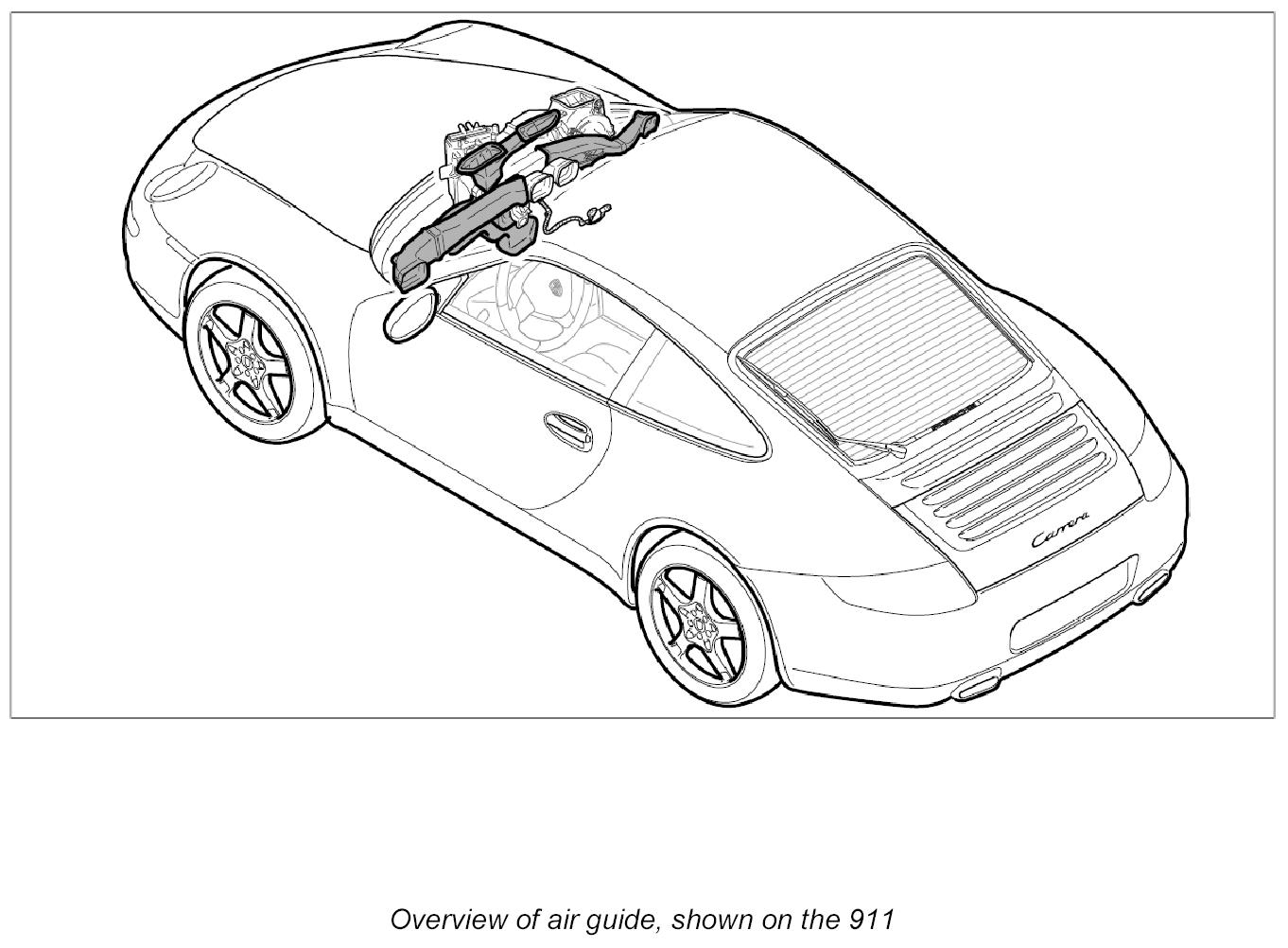3. Disengage air guide -D- by pulling it upward at the mounting bracket, and pull it out in a downward direction to remove it.