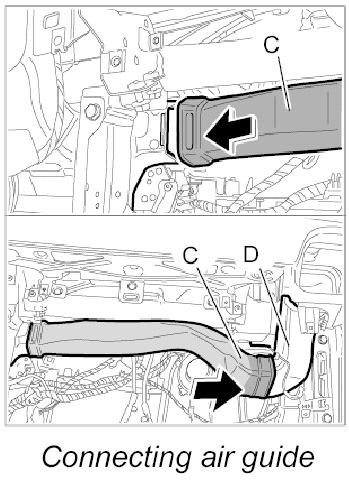 2. Connect air guide -C- at the heater/air-conditioning unit and at the air guide -D-.
