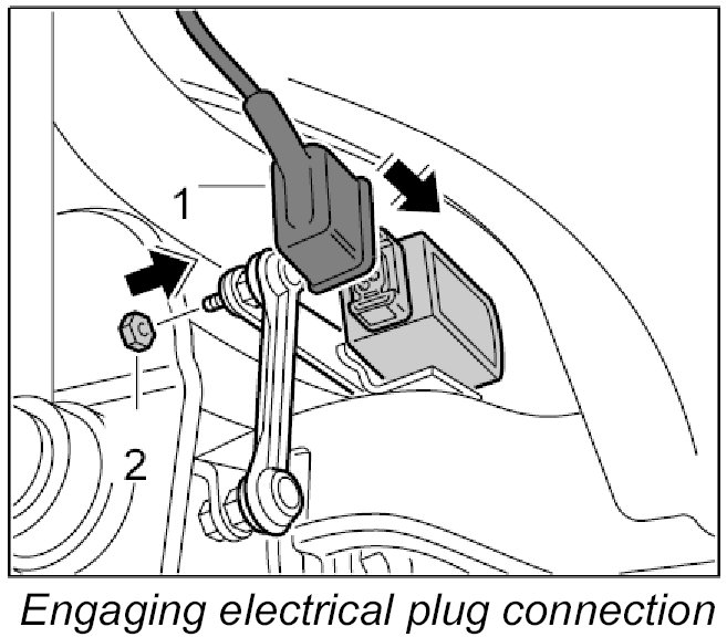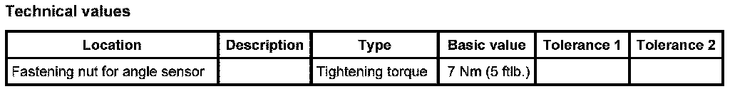 INFORMATION: If the angle sensor has been replaced, the front end control unit must be calibrated; afterwards the headlight setting must be checked and adjusted if necessary.