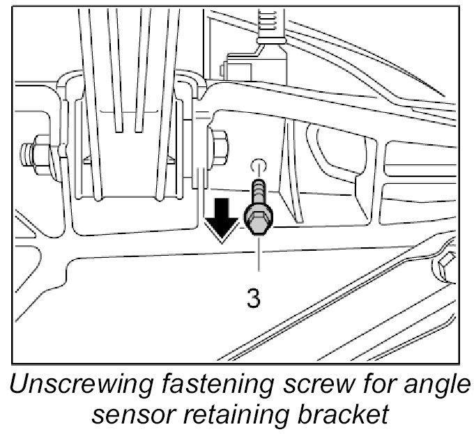 3. Unscrew fastening screw -3- for angle sensor retaining bracket on side member from below.