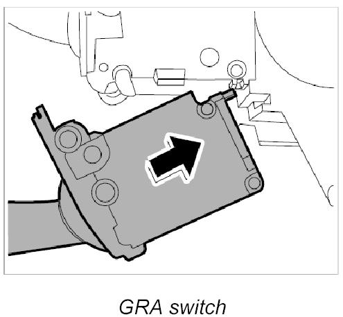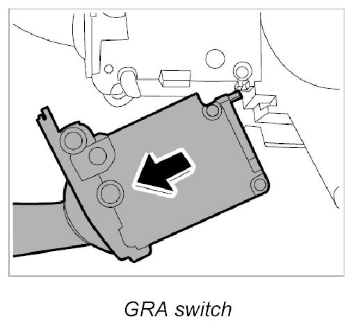 4. Pull the GRA switch -B- downward and disengage.
