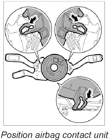 - To position the airbag contact unit in the central position, press the locking element and turn the rotor carefully to the left as far as it will go.