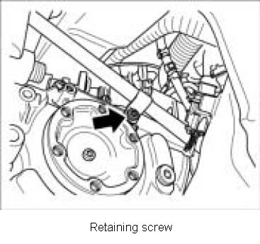 1. Screw in retaining screw between the transmission and the coolant pipe.