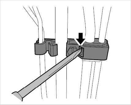 Once you have released the plug-in coupling (by inserting the loosening tool), pull the lines apart -arrows-.