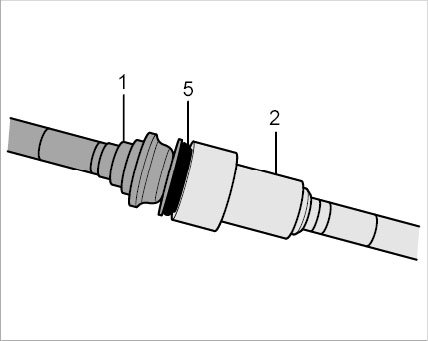 Pull on the connector -1- to check that the plug-in coupling is locked (push and pull slightly in axial direction). Counter at the plug-in sleeve -2- while doing this. If the plug-in coupling is locked correctly, you should be able to feel slight axial play between the connector -1- and plug-in sleeve -2-. A plug-in coupling cannot be partly locked.