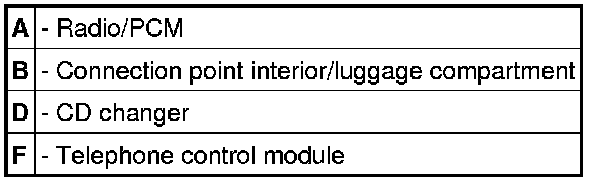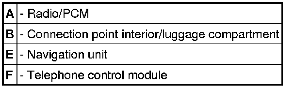 The graphic clarifies the cabling of the individual MOST control units which vary according to their equipment.