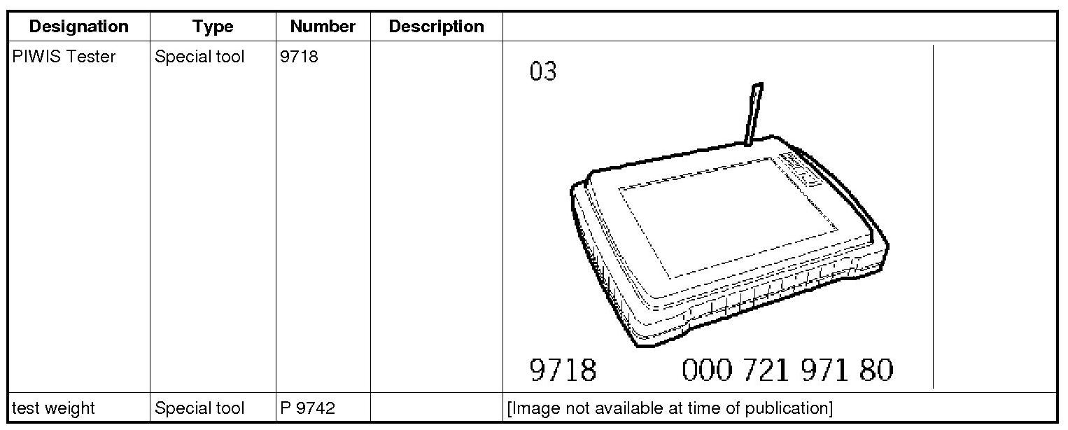 The procedure described here has been structured in general terms; different text or additions may appear in the PIWIS Tester 9718.