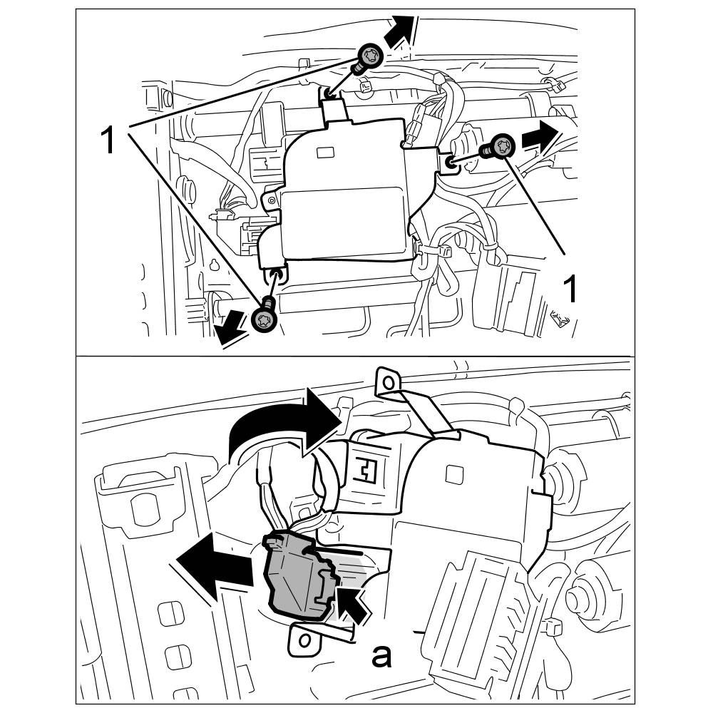 3. Release electric connector on AWS control unit -a- , unplug and tilt the AWS holder to the right side.