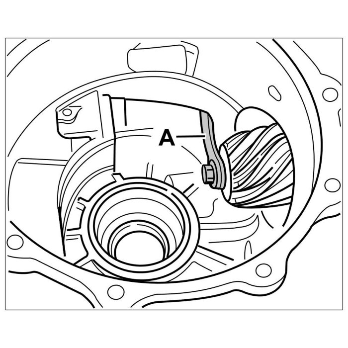 If the friction coefficient of the output shaft for turning from stop to stop is too low, the holder 3177 -A- must be fitted so that an exact circumferential backlash can be measured. The differential can only be inserted in such a way that the aperture of the bevel gears faces the output shaft.