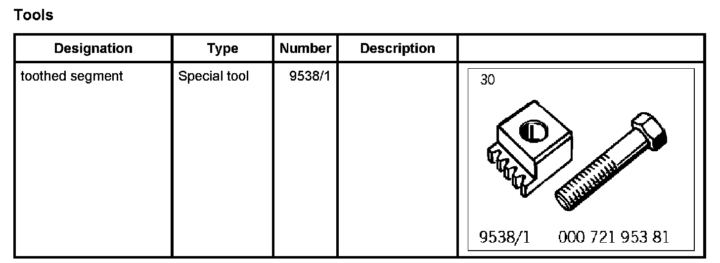 1. To counter, fit toothed segment 9538/1 to the crankcase using an M12 x 50 hexagon-head bolt (fine thread).
