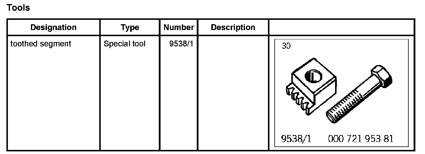 2. Align toothed segment 9538/1 and tighten fastening screw again.