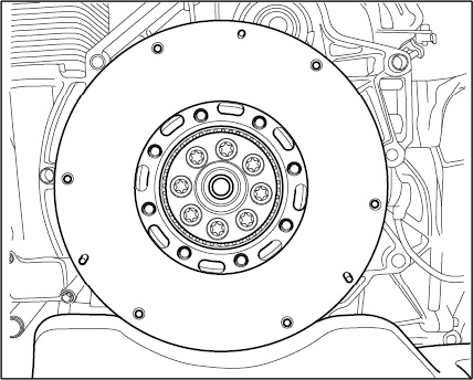 Information: Before re-installation, clean the friction surface of the flywheel with a clean lint-free cloth that has been soaked in solvent naphtha or acetone.