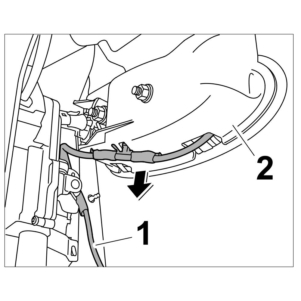 1. On the bottom part of door opener -2- clip in the electrical line -1-.