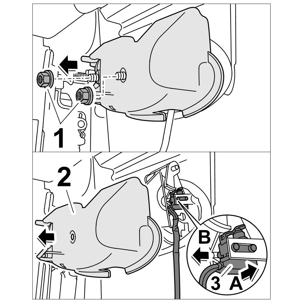 3. Gently loosen the locking tab -Arrow A- and remove the microswitch -3- -Arrow B-.