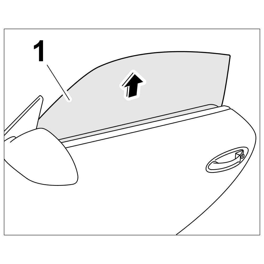 The door window glass must be guided in under the sealing lip using your hand (risk of damage to A-pillar sealing lip).