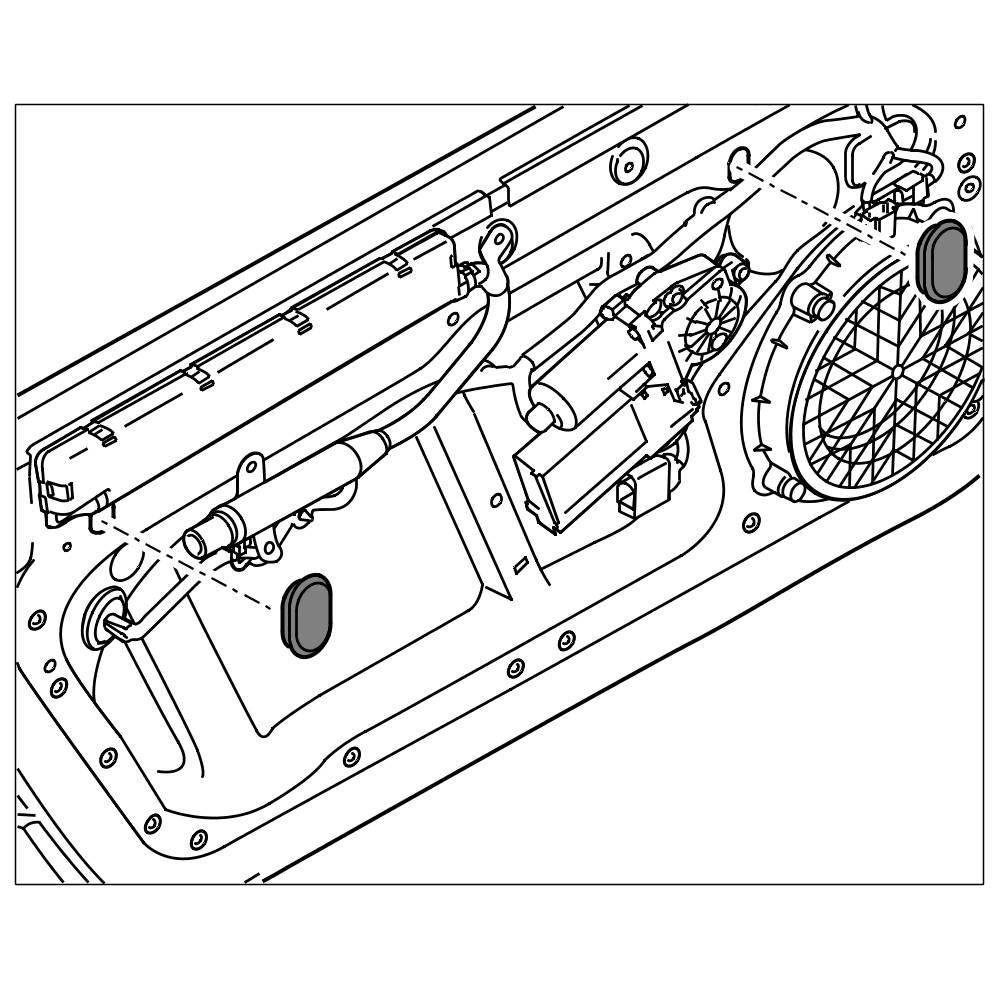 2. Press in rubber sleeves on the door sub-frame at the top left and right.