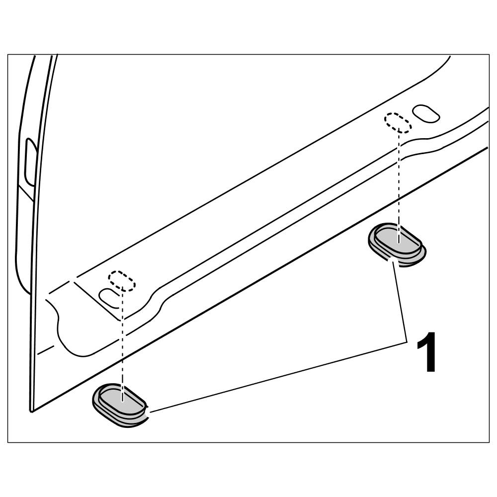 1. Press in rubber sleeves -1- on the door at the bottom left and right.
