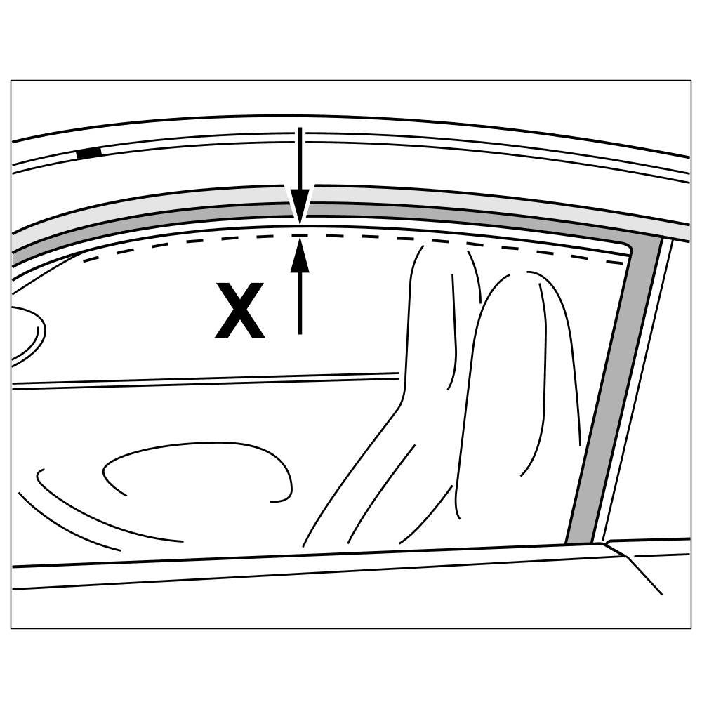 7.1. Adjust the door window glass to position -X- until the glass edge is flush with the seal on the cowl panel frame. Adjust at the adjusting screws on the drivers if necessary.