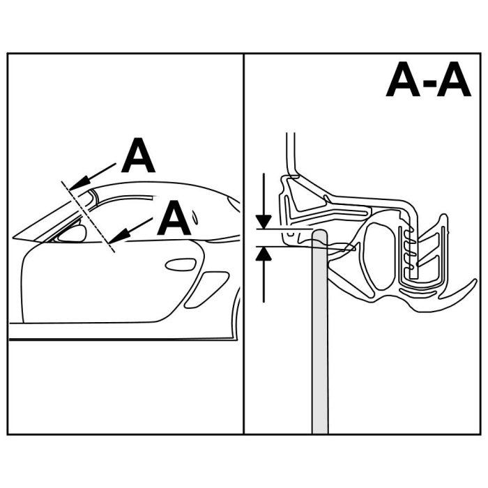 6. Carefully close the door and check the seal running along the glass edge of the cowl panel frame and roof frame.