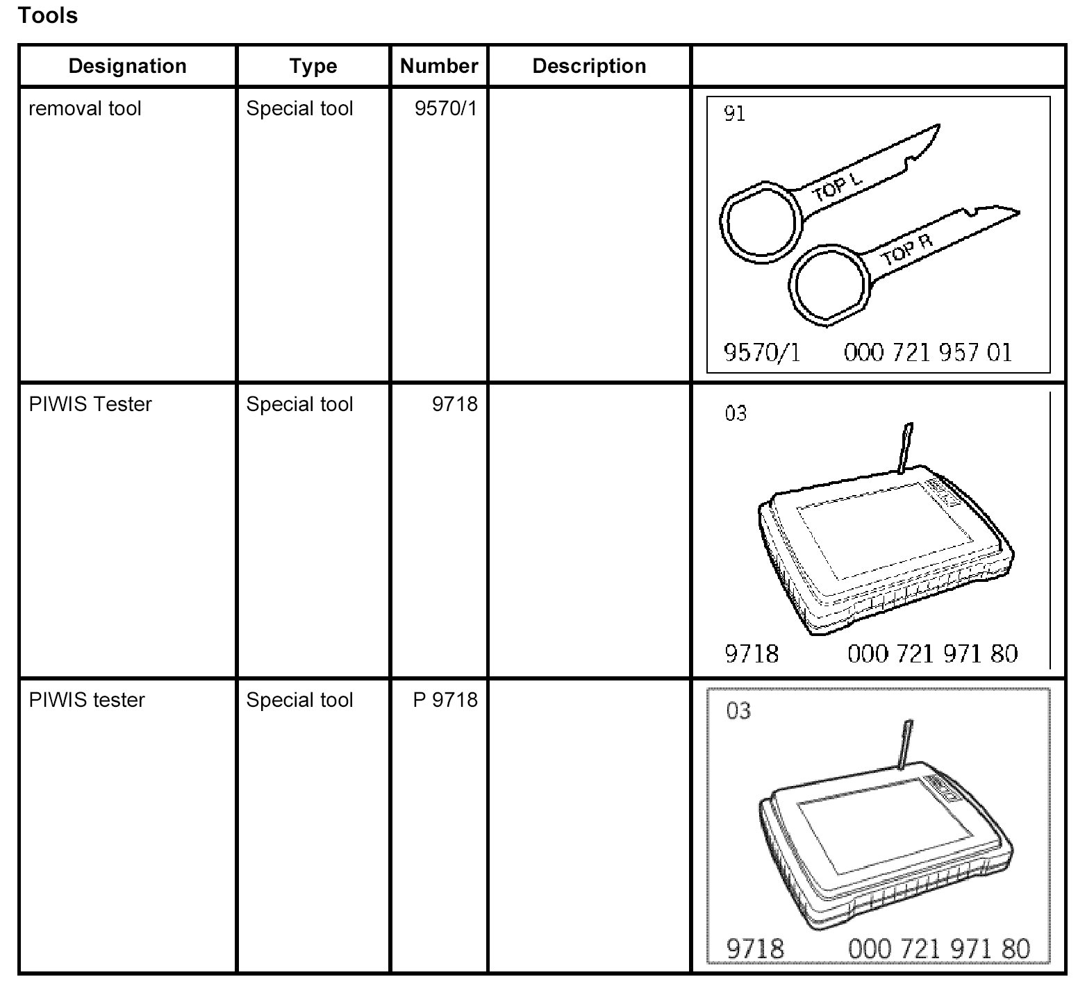 - The PIWIS Tester 9718 instructions take precedence since the description may be different. This may be due to more recent software versions.