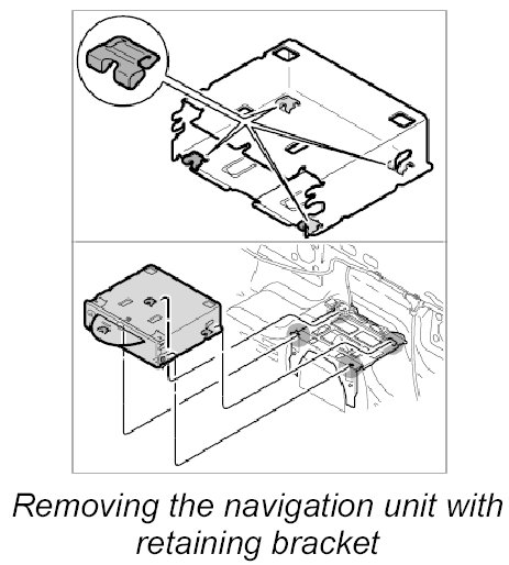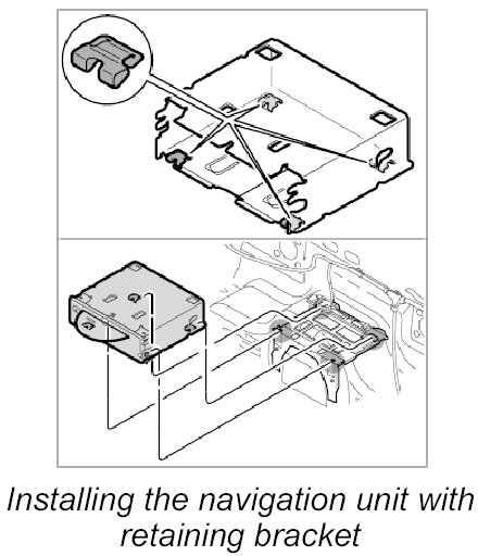 - If the navigation unit is removed with the retaining bracket, then new clips must be used before reinstallation.