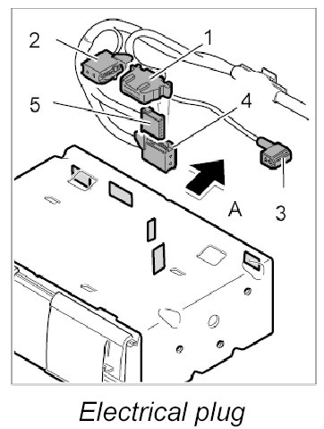 2. Push in electrical plug connections -1, 2, 3- until plugs are felt to engage.