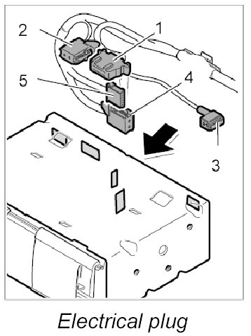 2. Unlock the electrical plug -1, 2, 3- on the navigation unit and pull out the navigation unit.