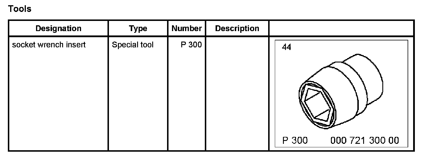 3. Remove front right wheel. Use special tool socket wrench insert P 300 to avoid damage to the rim.