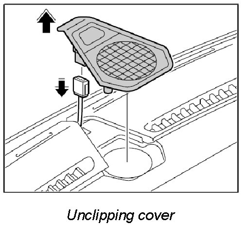 1. Lift cover on dashboard using plastic spatula and unclip.