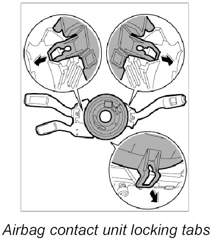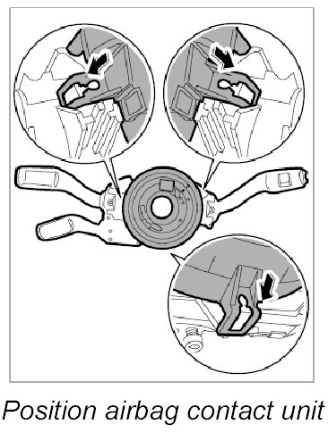 - To position the airbag contact unit in the central position, press the locking element and turn the rotor carefully to the left as far as it will go.