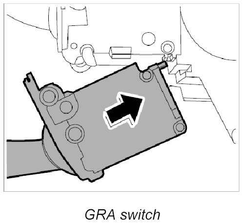 4. Pull the GRA switch -B- downward and disengage.