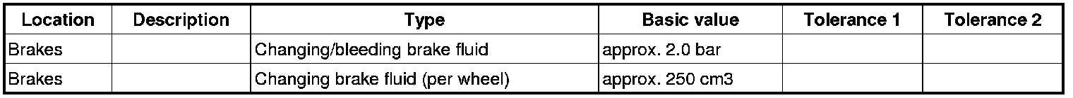 5. Open every bleeder valve until clear, bubble-free brake fluid emerges and until the corresponding change quantity per brake caliper is reached. Per brake caliper=> Changing brake fluid (per wheel): approx. 250 cm3.