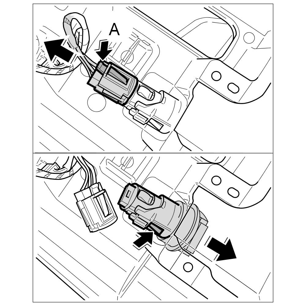 1. Turn centre console, unlock electric plug -A- and pull from the socket.