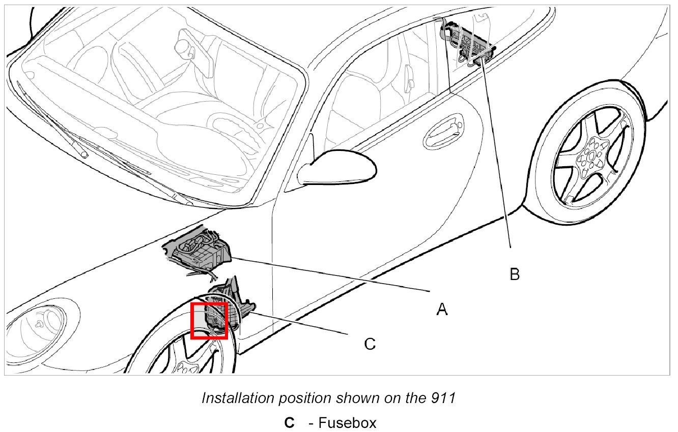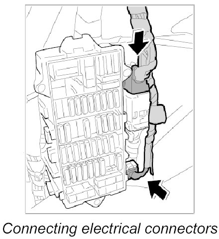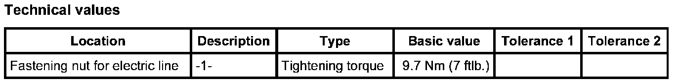 1. Engage the fusebox on the support and secure with the fastening nut -1-. Ensure that the electrical lines are not trapped or installed live. - Tightening torque: 9.7 Nm (7 ft. lbs.)