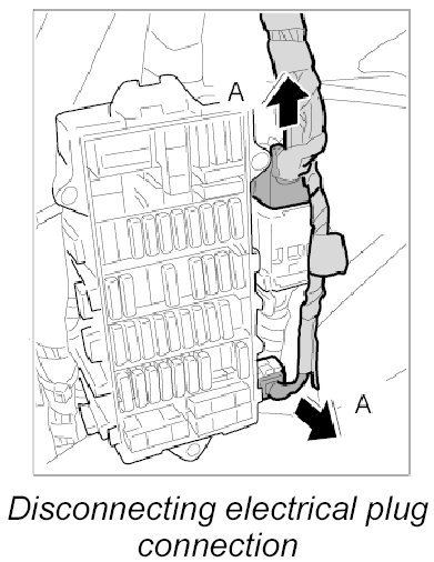 2. Unscrew the fastening nuts -1-, pull the fusebox forward and disengage it from the support.