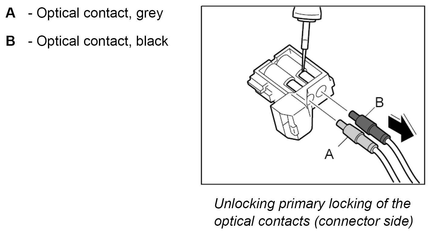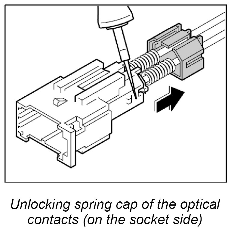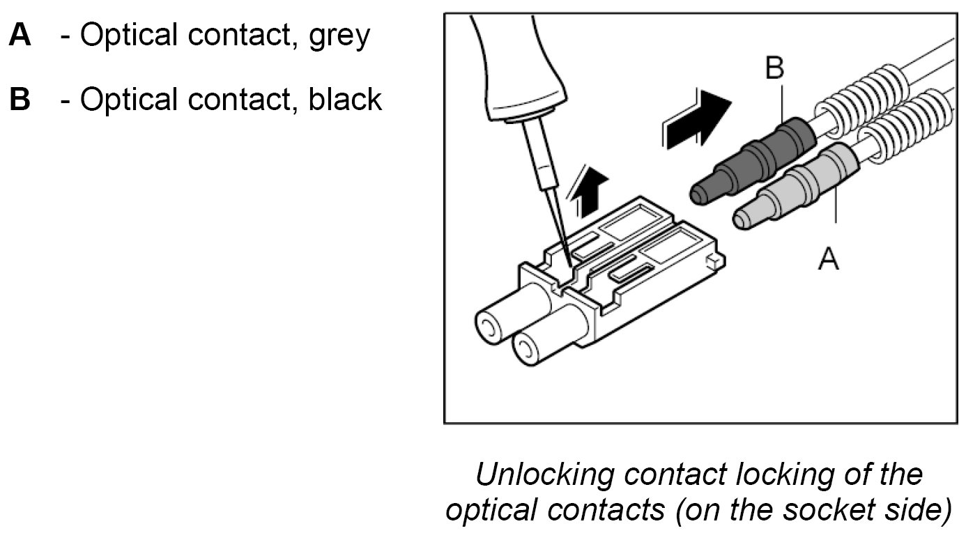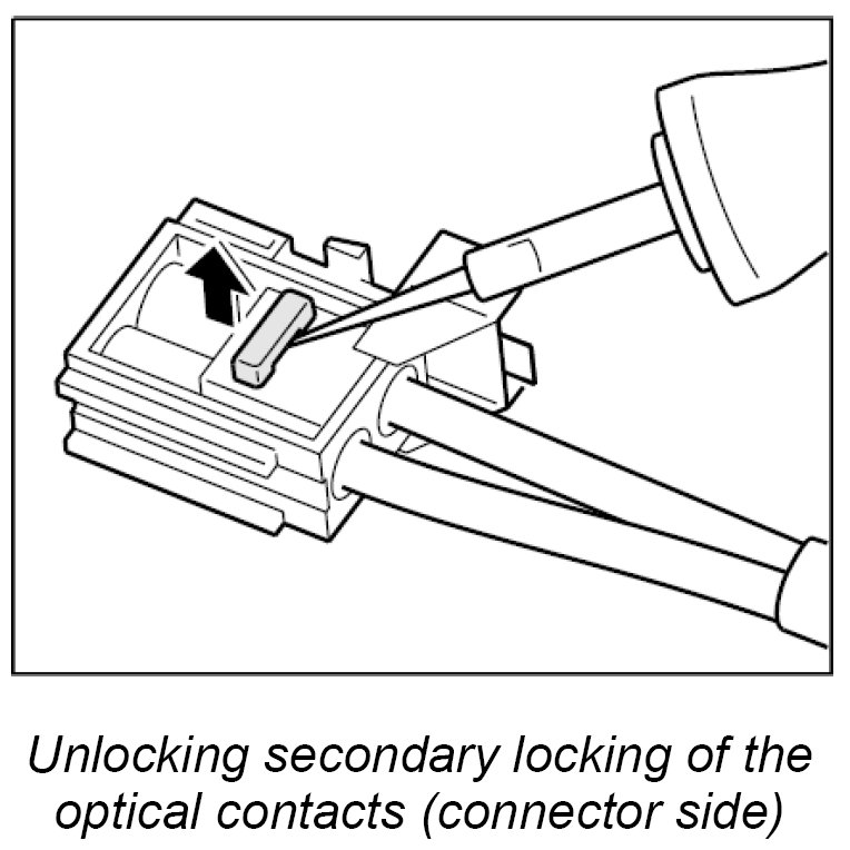 When exchanging the LWL, the optical contacts from the plug connection must be removed.
