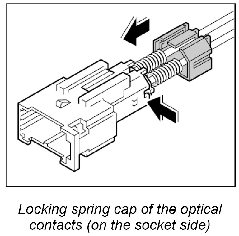 Do not touch the exposed contact surfaces while or after removing the dust boot, as otherwise the optical contacts could become damaged or dirty.