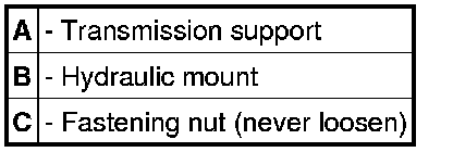 The fastening nuts of the transmission support must never be loosened at the hydraulic mount because otherwise the transmission brackets will be damaged.
