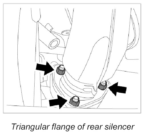 5. Unscrew three M8 lock nuts on the triangular flange of the exhaust manifold and remove metal seal.