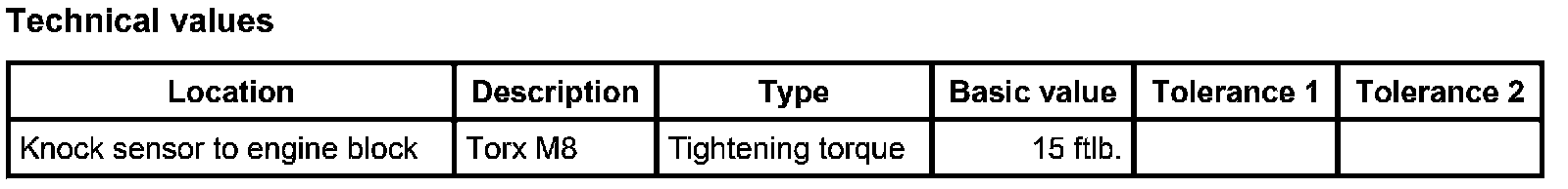 1. Insert knock sensor -3- in the original position and then screw in and tighten the Torx screw (M8 x 35) -2-. - Tightening torque: 15 ft. lbs.